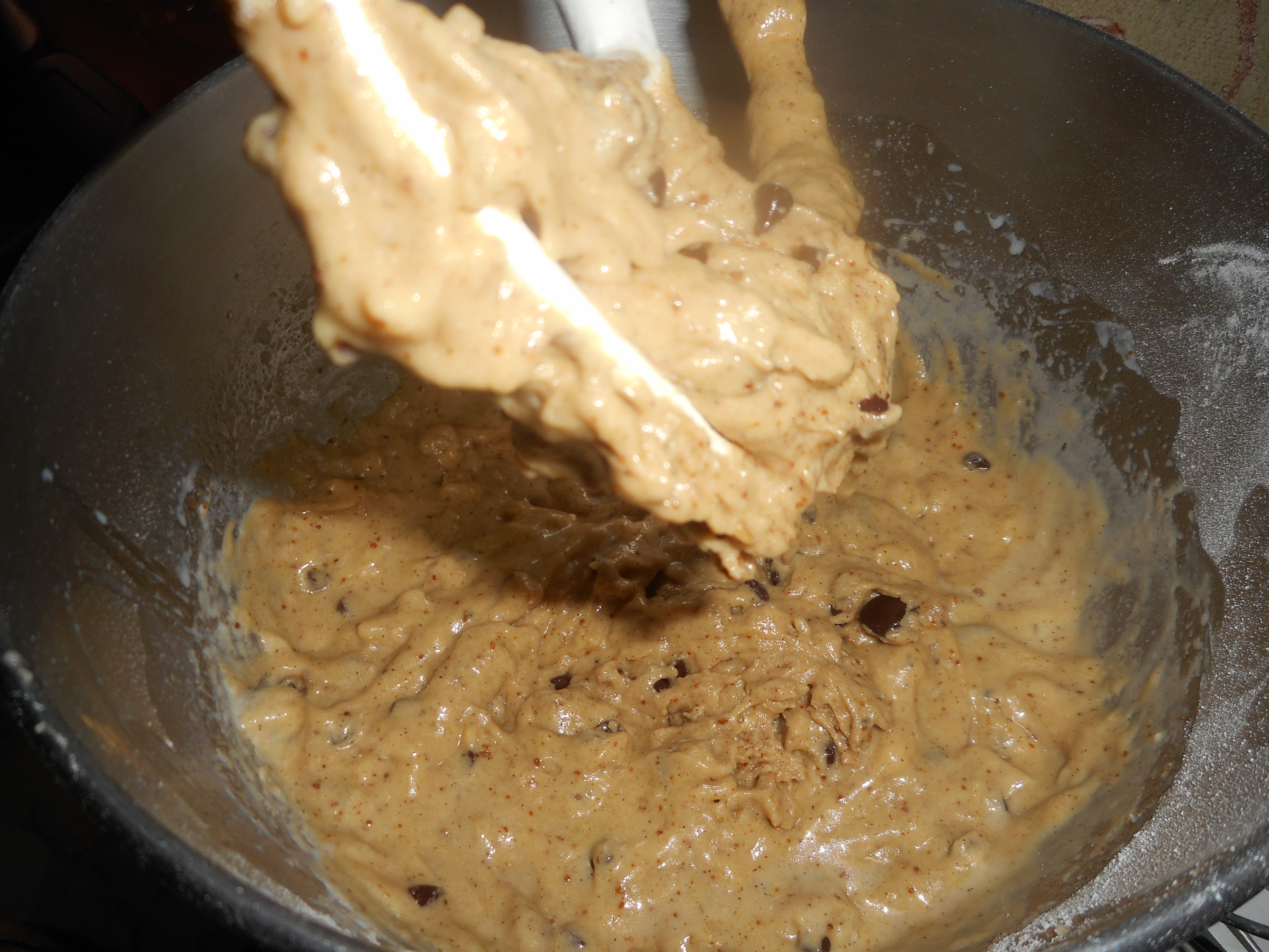 Add bananas and walnuts; stir to coat them with dry mix, then add the chocolate and stir briefly.