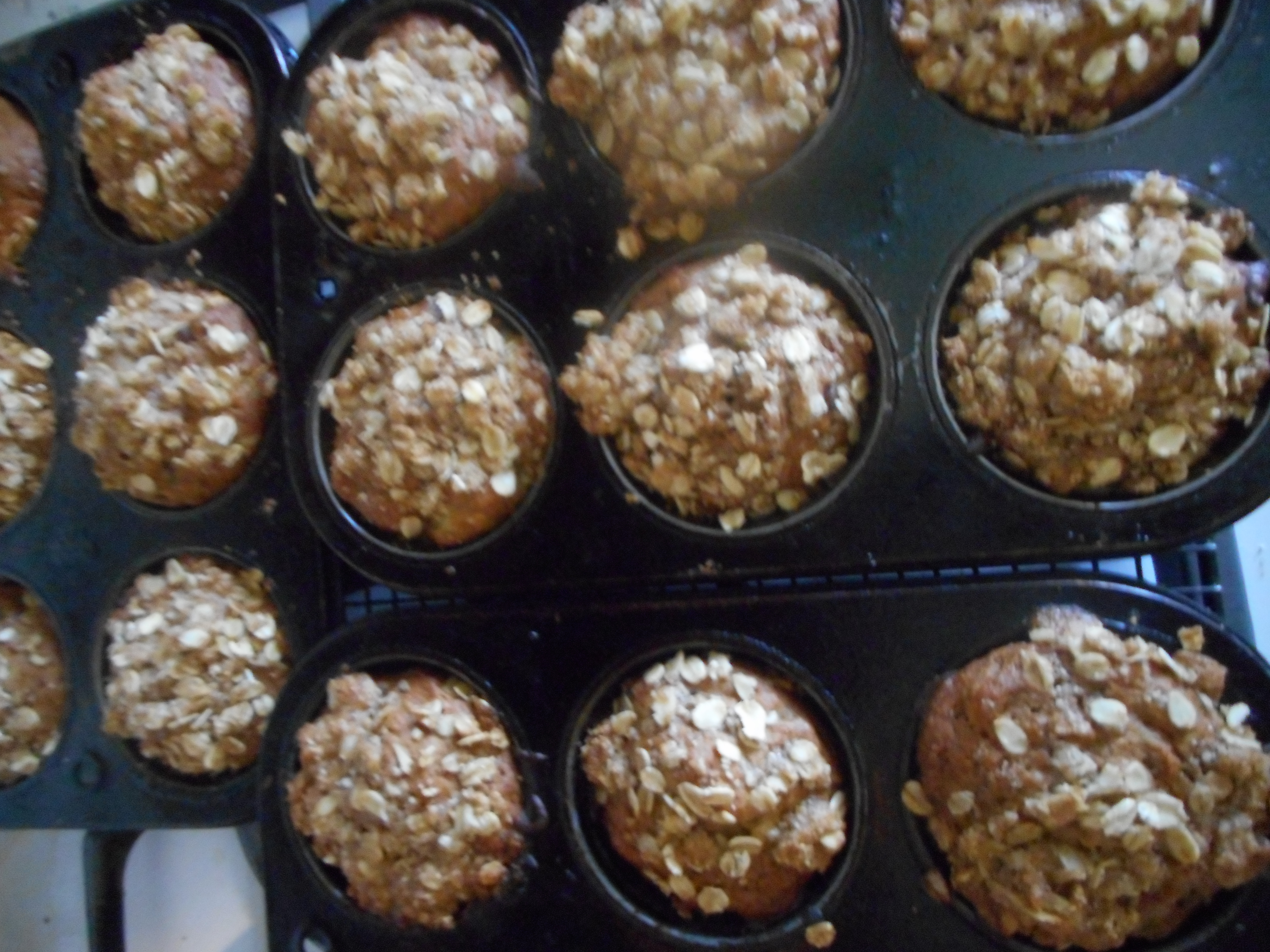 Fill muffin pans 2/3 full. Sprinkle with topping and press in carefully if you do the streusal. Bake 20-24 min until golden brown. Do not overbake or they get dry. Remove from oven and let cool 2-3 min before gently turning them out from the pans to cool on a rack. I use a butter knife to release them by running it around the edge once before tipping them out. They freeze well for up to 3 weeks. They keep in my ceramic muffin/cookie jar for a few days.