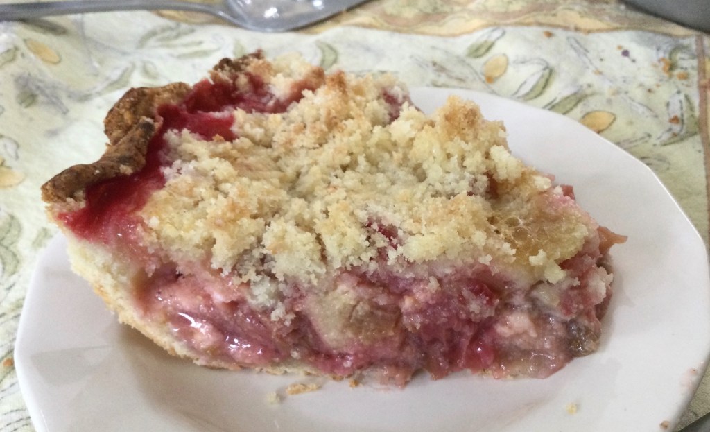 I like it because it has a great texture and the flavor is complex but subtly rhubarby. It isn’t really soft or all that custardy (if I didn’t say the word custard you would never know) but has a more cake-like texture. It is a game changer of a pie. I promise you that!