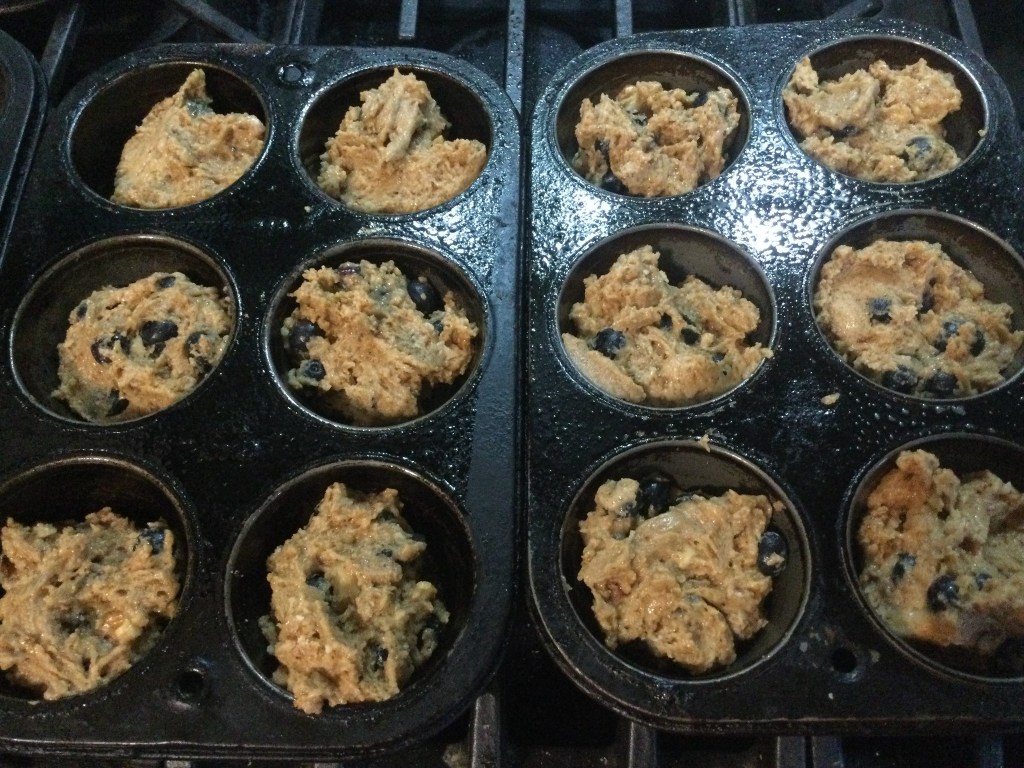 Oh….the muffin saga continues. What shall I make for summer snack time? Turning to my trusty muffin recipe I try a new version that somehow, I never seem to make: blueberry. Knowing I will get a similar texture to the cranberry blueberry I have made before, if I use the same easy to dump together recipe. So easy: I think I can almost do it in my sleep! That’s why these fruity muffins are often my go-to baked snack; they can be quickly thrown together, a dependably yummy and it is simple to vary the flavor depending on what fruit is available. I mention all this that so you can feel comfortable making your own version of them. They are always tasty and far cheaper and healthier than GF muffins you can buy.