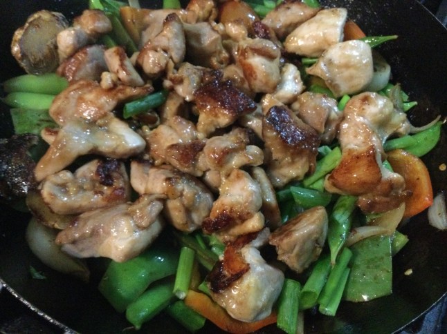Heat a medium saucepan of well salted water. While it heats put a medium frying pan on to heat; spray it first with olive oil cooking spray. I cooked it about 15 minutes until fairly done; turned it over 3-4 times – every 2 minutes I turned them. Once browned I added 3-4 Tbsp water to help it cook. Cook until 150 degrees inside. Let cool and then slice.