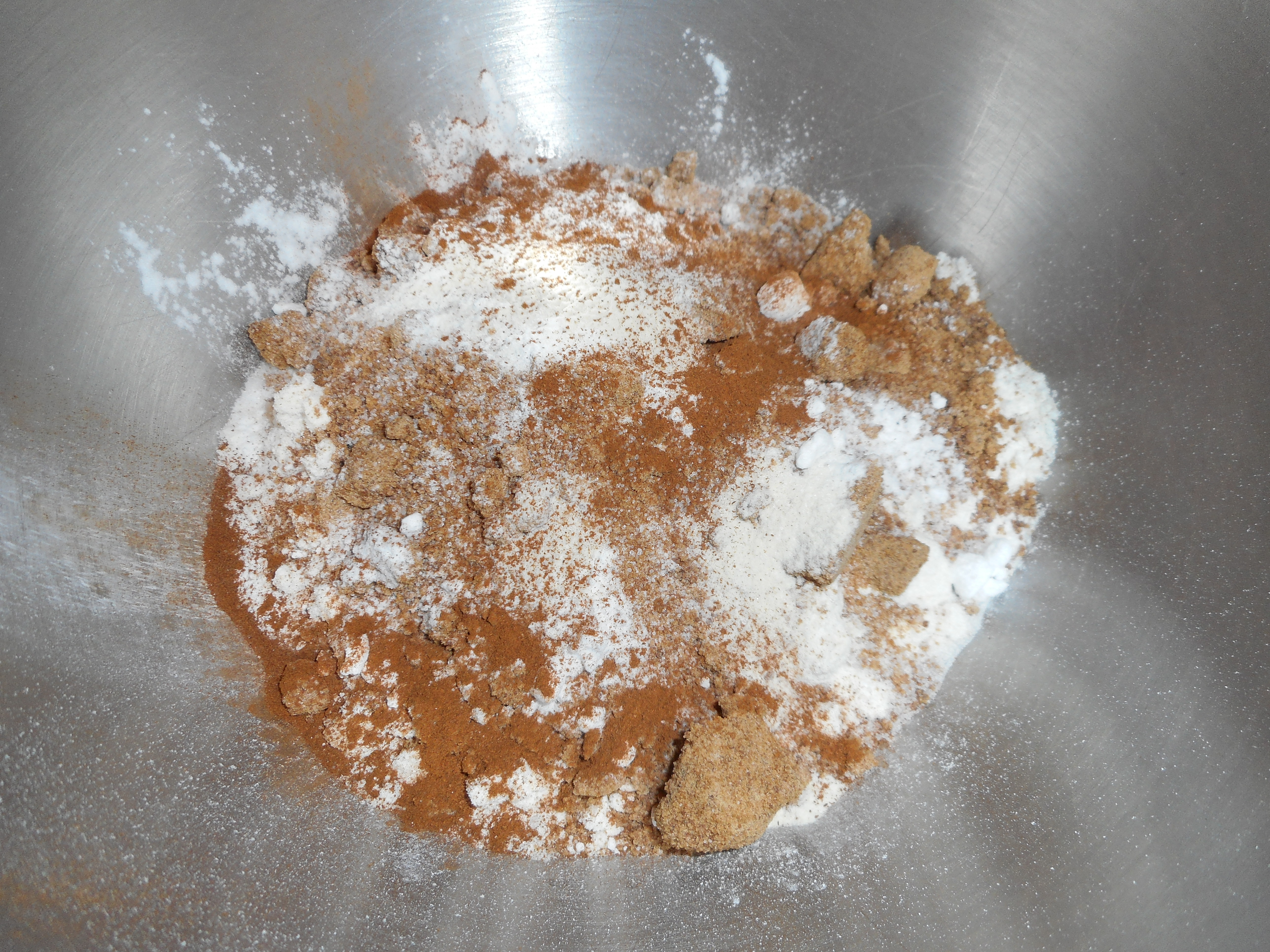 Spray 9 inch metal pie pan with cooking spray, dust with white rice flour. (I forget this step a LOT!)
