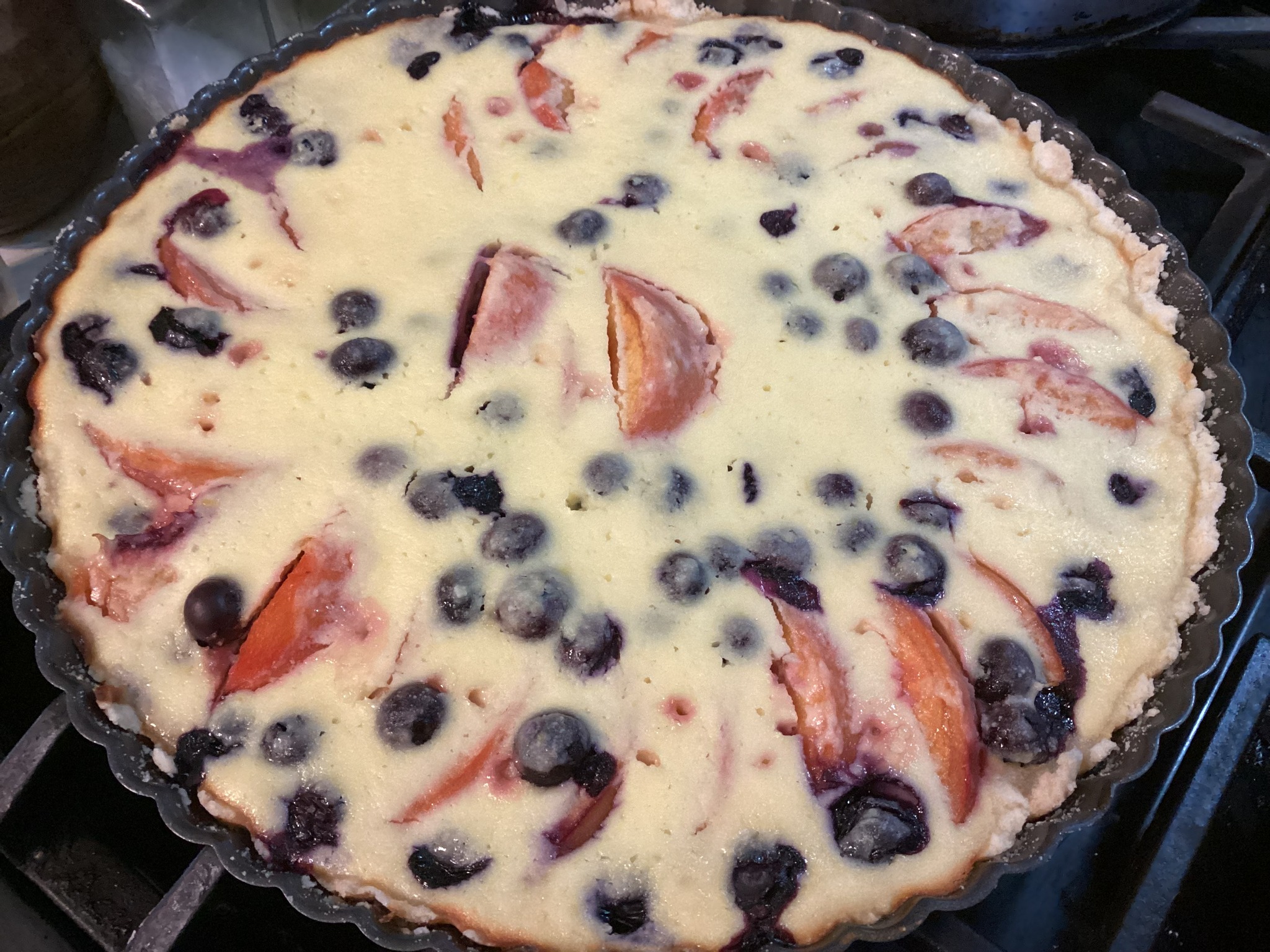 I have made this filling many times. I used a simple, sweet, press in, gf pie crust as I can’t roll pie crust right now. It adds a bit of sweetness and is super easy; no rolling out the pie dough. I added peaches and made it in a larger 11 inch round tart pan. Success!
