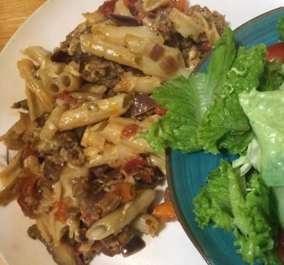 Some on a plate before I devour it! I like the penne; ziti is too big in my opinion. This is good tasting comfort food.