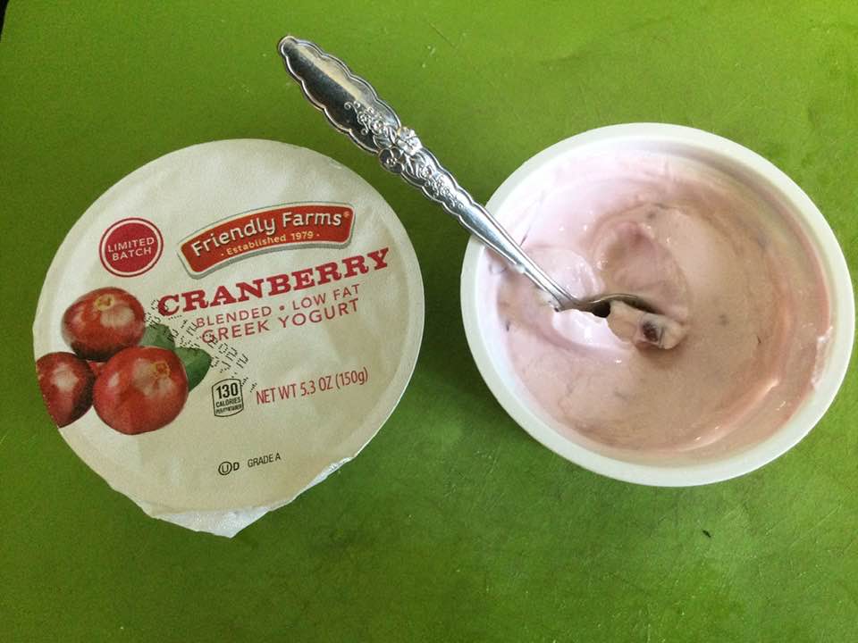 Yogurt, that’s what I like for lunch most weekdays, with a small sandwich and a tangerine. I watch these infomercials about how bad yogurt is for you due to excessive sugar. So, I try to stick to lower sugar varieties. I also buy plain organic Greek or whole yogurt to which I add homemade jam/marmalade for a change of pace and as an excellent way to use my jams. Aldi’s whole milk Greek yogurt is particularly delightful. But I have to confess a weakness for Friendly Farms Zero fat strawberry Greek yogurt in the 5.3-ounce cup. I originally though it would be weird with zero fat and avoided it for like a year but when I finally snagged some, I discovered that it tastes rich and smooth. The FF strawberry flavor isn’t overwhelming, but it isn’t weak either. It’s super creamy and almost fluffy on my tongue. I never get tired of it. I will say the seasonal Cranberry flavor low-fat Greek yogurt is also excellent. I often get a blueberry or raspberry too. Yummers!