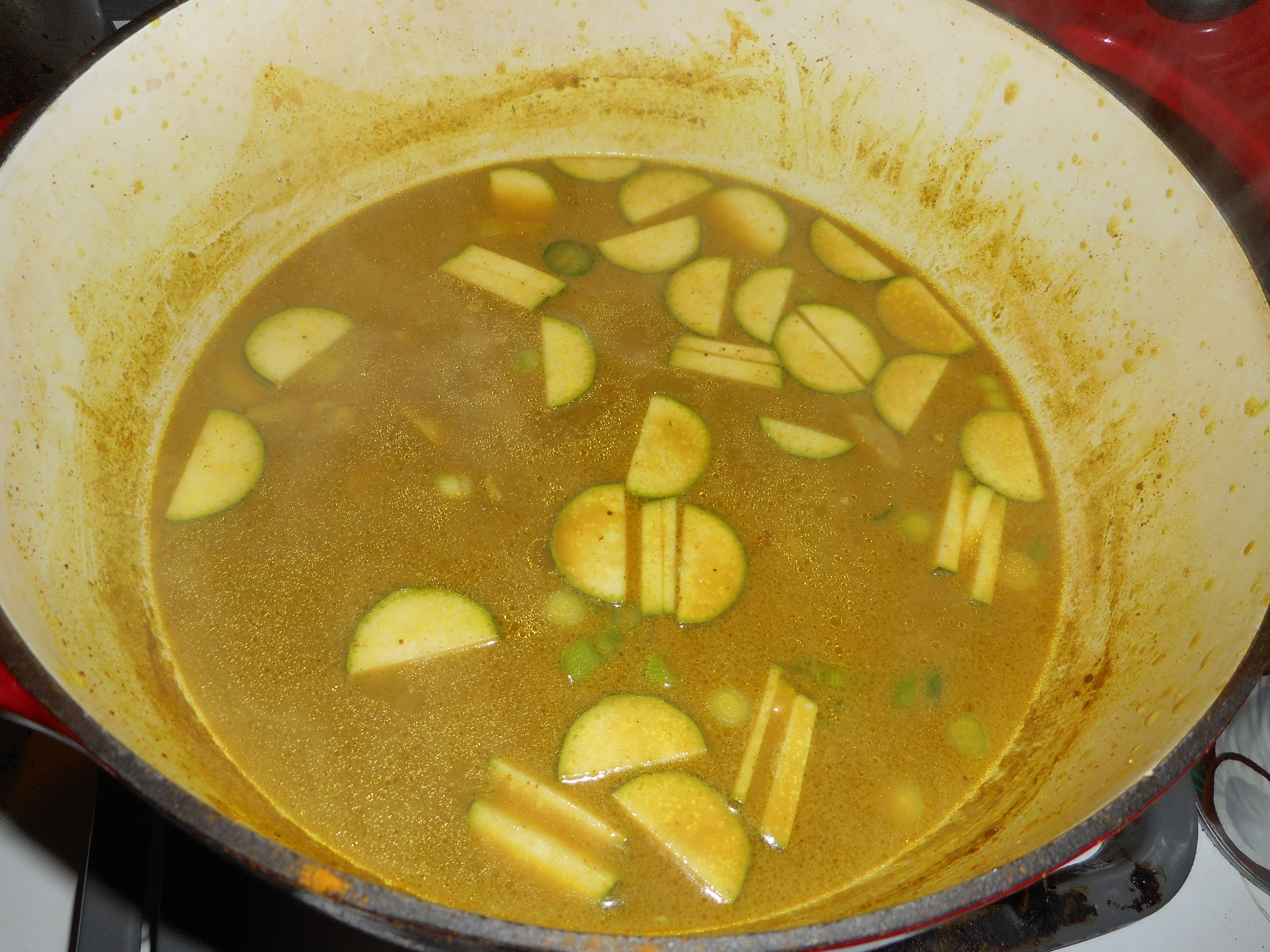 First, cut the butternut squash down the length and scoop out the seeds. No need to peel. Place cut side down on a rimmed baking sheet sprayed with cooking spray. Cut the onion in half and likewise the apple, the leek and carrots; cut off the leek above the light green portion and core the apple halves. Put apples cut side up. Roast them all in a 375 degree oven until the squash is tender when poked with a fork. About 35 to 45 minutes depending on the size of your squash. If the other fruits and veggies are browned and done early slide them off to a plate to cool. Caramelized is fantastic but no burnt leeks in my soup thank you!