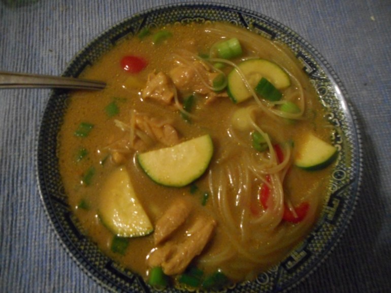 When the squash is cool enough to handle, use a big spoon to scoop out all the meat of it into your blender. Add the scooped out contents of the apple halves, the garlic you have squeezed out of its skin, the carrots and leek halves. Pour in 2-3 cups of chicken broth, blend until smooth, and add more broth until you reach a consistency you like. Mine was kinda thick and porridgey. If you prefer to use a food processor that will work or put the scooped out veggies into a large sauce pan and blend with your immersion (boat motor) blender. This will not be as smooth as the blender makes it but it is more fun and less cleaning as no blender container to wash!