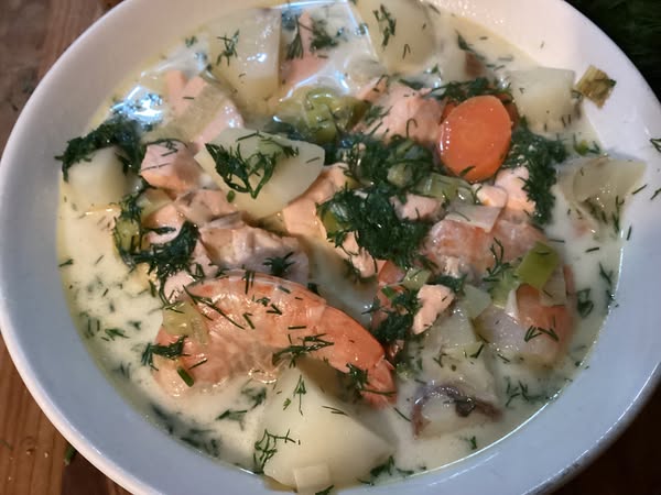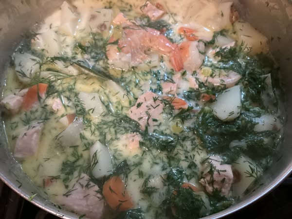 This soup is a combination of at least 3 recipes maybe 4. I think it is delicious, delicate and definitely a different direction than what I normally do with salmon fillet. You can mess with the ingredients but stick with salmon, dill and potatoes in a light creamy soup. Change up your soup game and try this one for sure!
