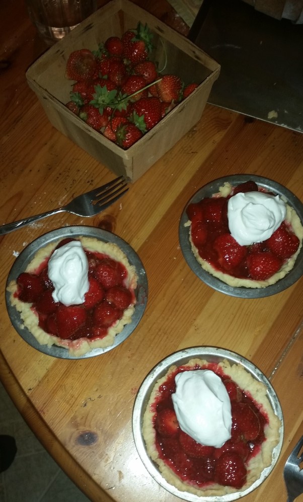 I just have to share this strawberry shortcake recipe with you. We had it on Father’s Day, gluten free shortcake of course. I am not sure where I got the shortcake recipe; maybe my old Bette Hagman Gourmet Cookbook. It was a big hit with everyone just like in past years. I used to make it a lot when I could still use all purpose flour but my new gf biscuit version is pretty tasty I have to say. But there is one thing, you gotta make it with the best freaking strawberries you can find. None of those firm ones with whitish cores that are shipped in from far away. You need juicy ripe scented local red berries that can be chopped coarsely and mixed with sugar and served over shortbread. Gluten free short bread. Yes, it can be done and it will taste fantastic!
