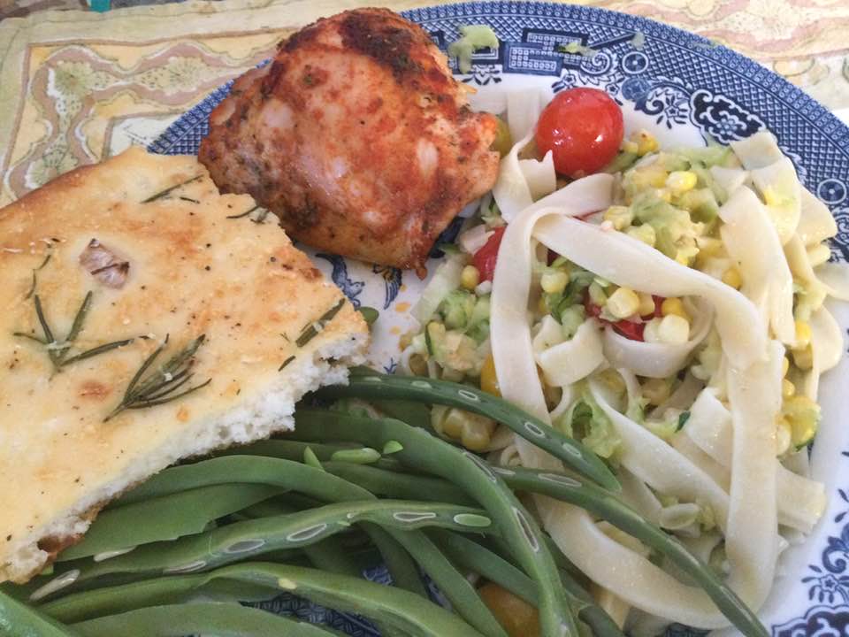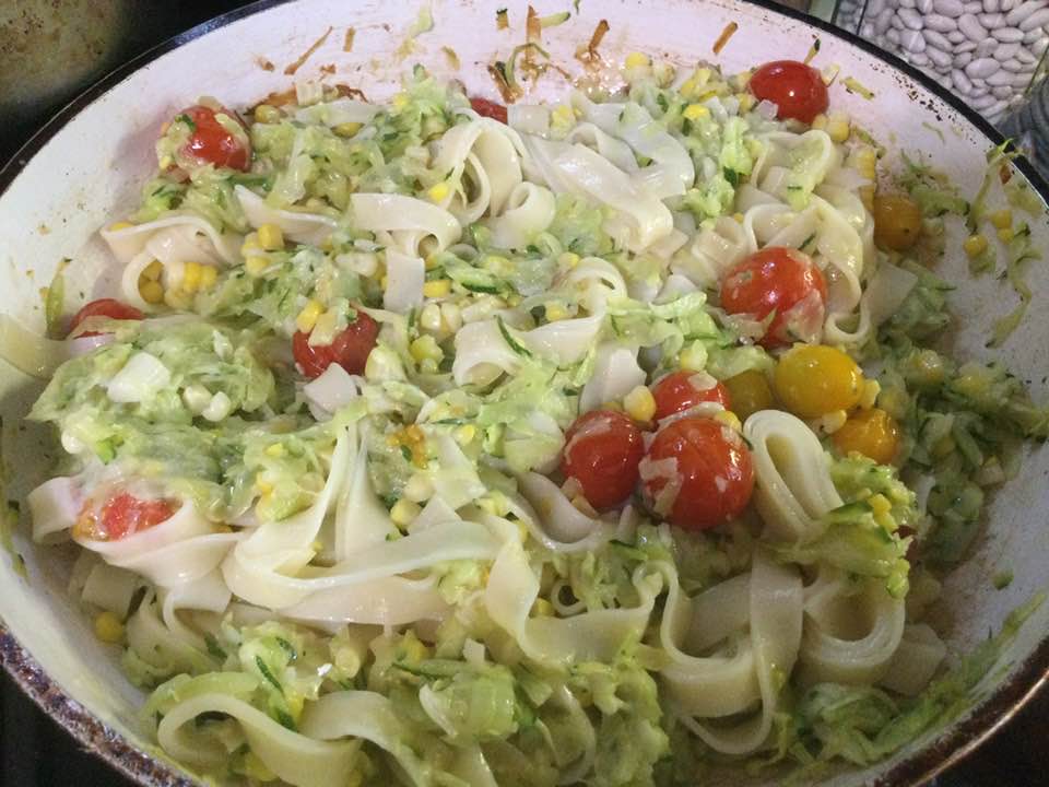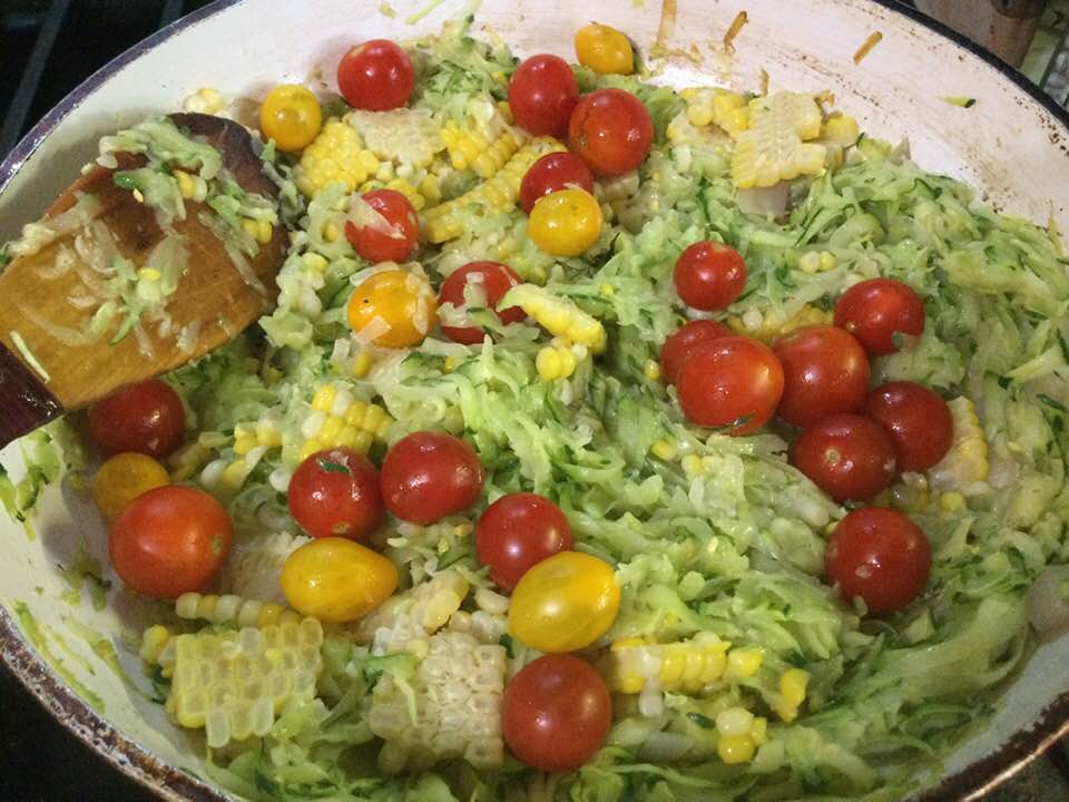 Sometimes you just don’t feel like making a traditional crust. This was one of those times. I had a homegrown zucchini, some cherry tomatoes, cheese, eggs, and 2 potatoes. Quiche for supper! This is a different filling recipe than my usual one; it is more eggs, half and half instead of milk and no cottage cheese; cubed mozzarella cheese. It was a delicious change of pace especially with the julienned fresh basil leaves sprinkled all over the top. You could use other veggies; I went with what I had. The garden’s bounty and it didn’t fail me.